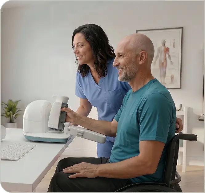Designed in collaboration with therapists and patients, our systems feature adjustable positioning, comfortable padding, intuitive controls, and engaging visual feedback. Patients report high satisfaction and motivation to complete therapy sessions.