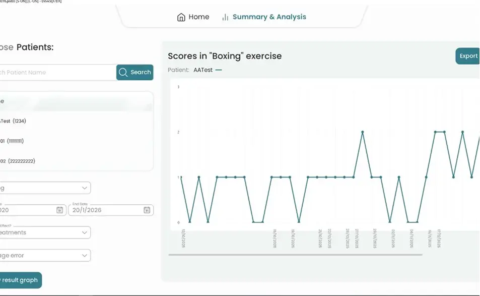Every therapy session generates detailed performance metrics including range of motion, force output, movement accuracy, and progress trends. Our analytics dashboard provides therapists with actionable insights to optimize treatment plans and demonstrate ROI to stakeholders.