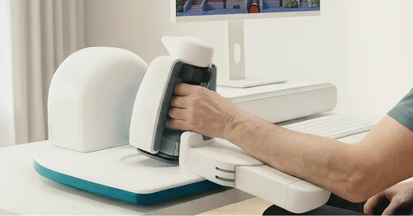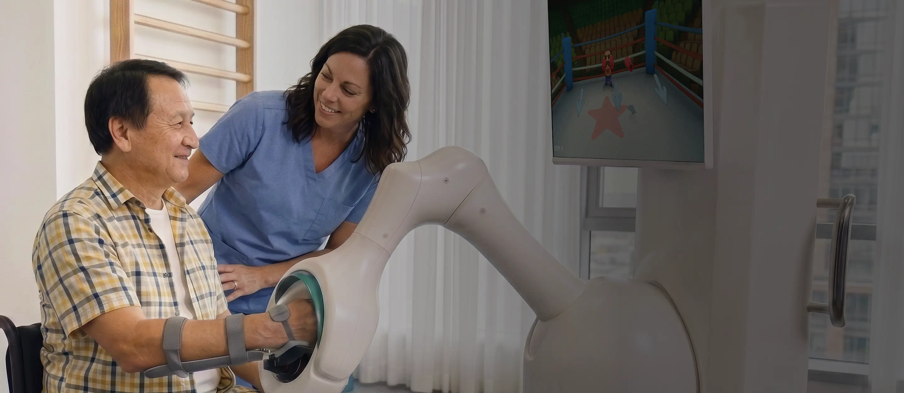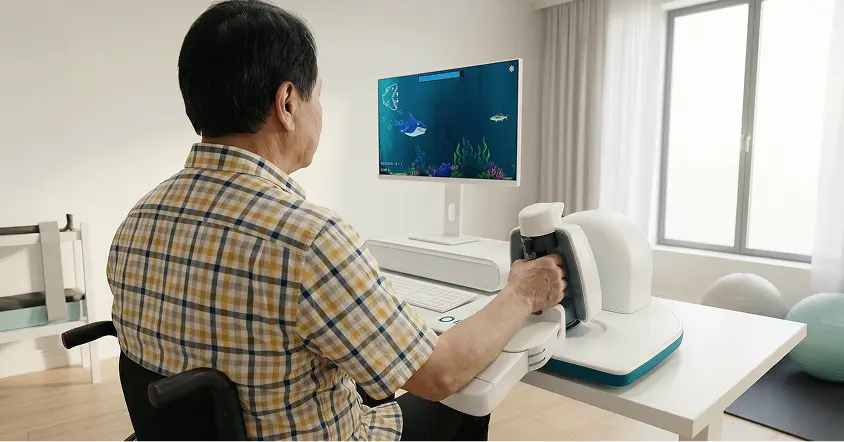 - Precision-controlled robotics train grasp-and-release movements across the hand and fingers, enabling smooth, controlled motion.