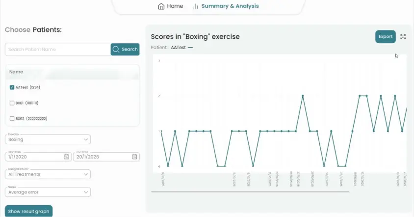 - Treatment parameters adjust in real time based on patient performance, supporting progressive motor learning throughout the rehabilitation process.